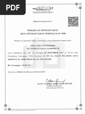 Saleima Enterprise Ssm Reg No X Mof Reg No Saleima Catering Ssm Reg No M Pdf Free Download