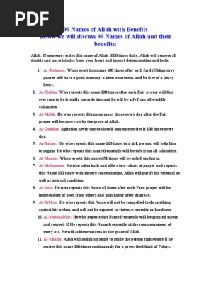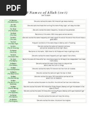 99 Names Of Allah With Benefits Pdf Religious Behaviour And Experience Religion And Belief