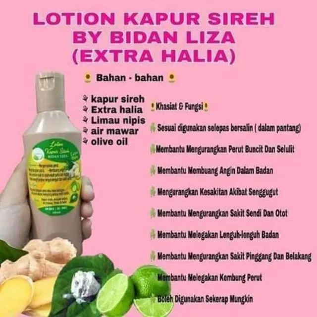 Lotion Kapur Sireh Bidan Liza Versi Sejuk Panas Extra Halia Bidara Free Munafie Badan Lks Lks Panas Lks Halia Lks Bidara Lazada